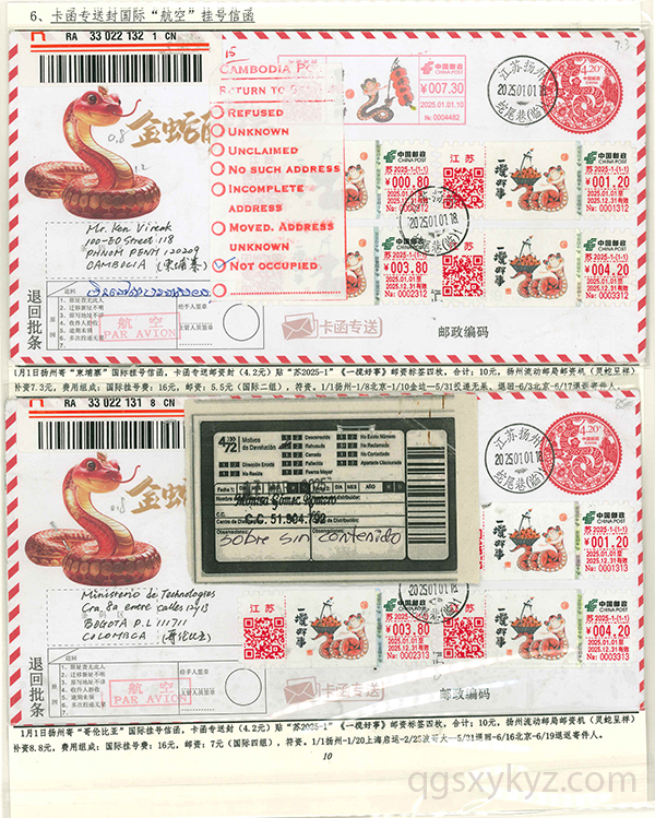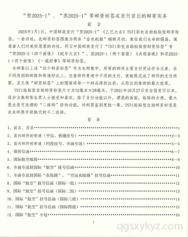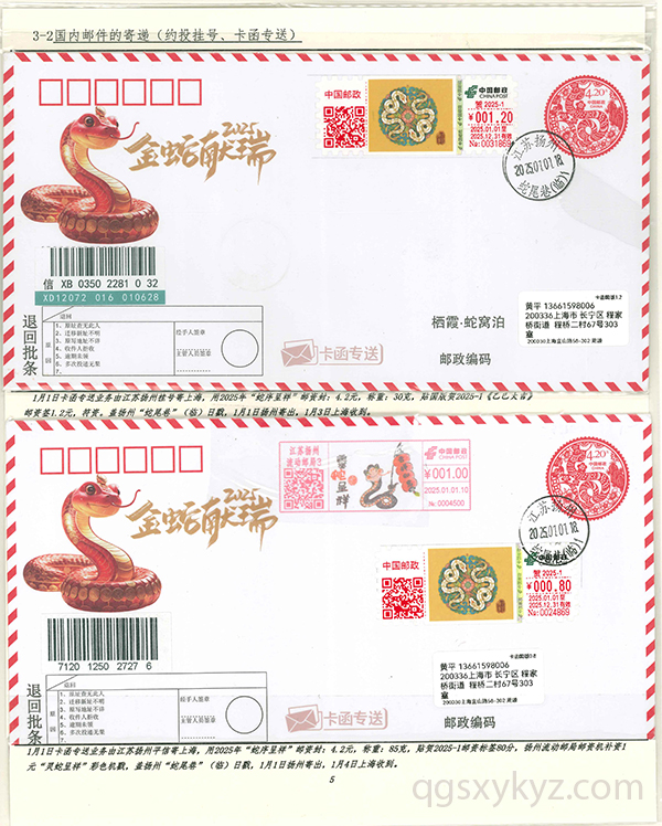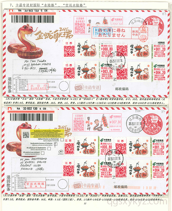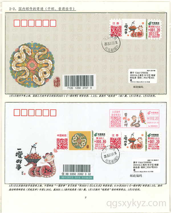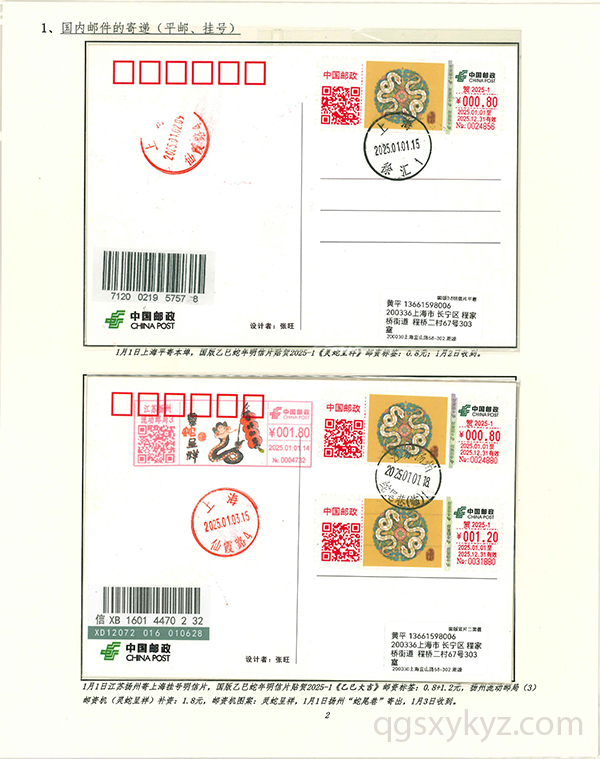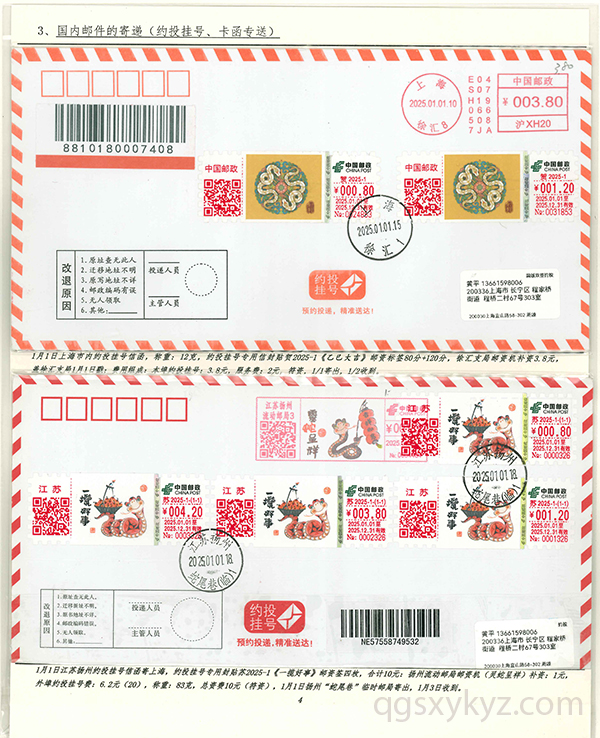 “贺2025-1”、“苏2025-1”等邮资标签在发行首日的邮寄实务