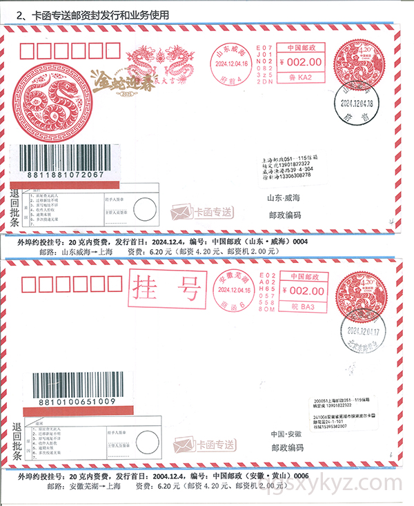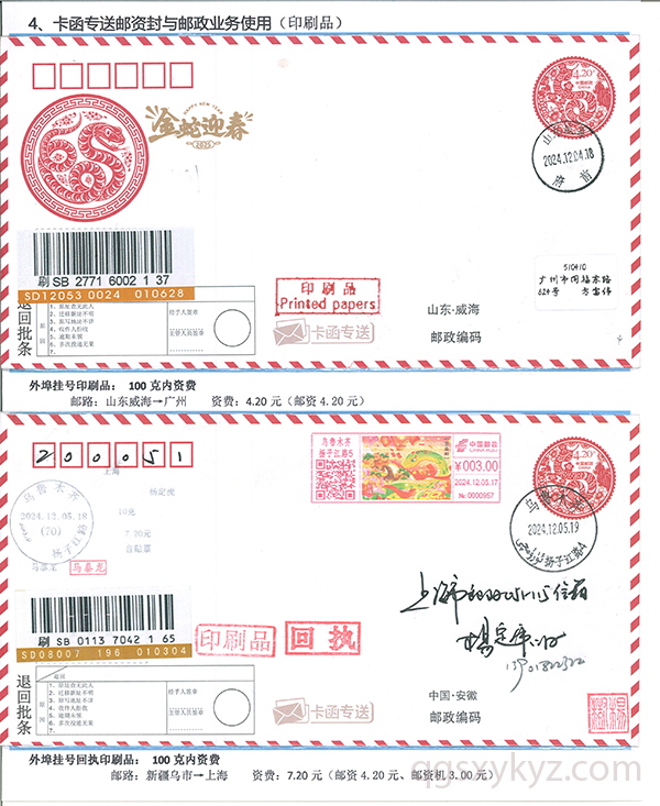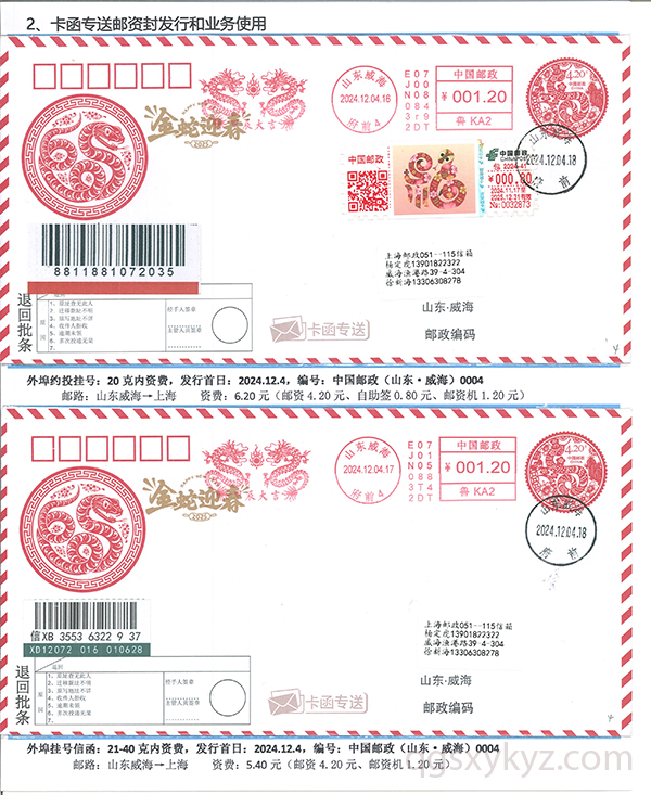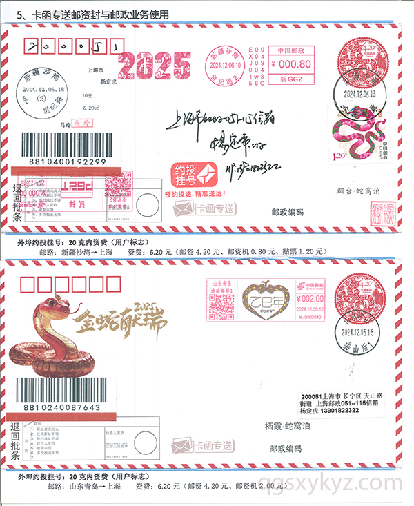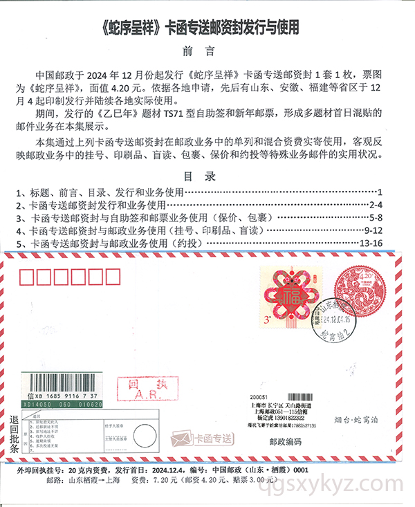 《蛇序呈祥》卡函专送邮资封发行与使用